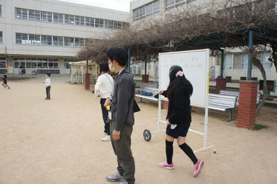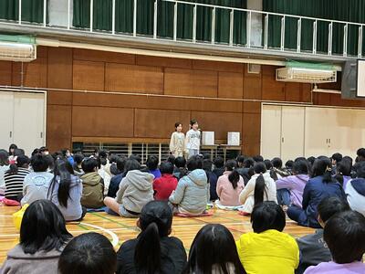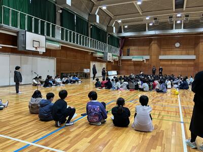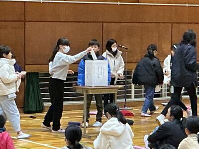 4、5年生が集まり、立会演説会がありました。