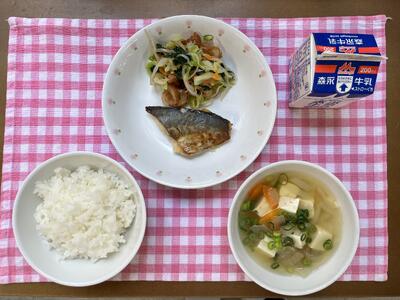 ごはん、鰆の西京焼き、ちくわとキャベツの和物、豆腐汁、牛乳