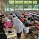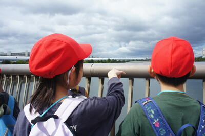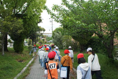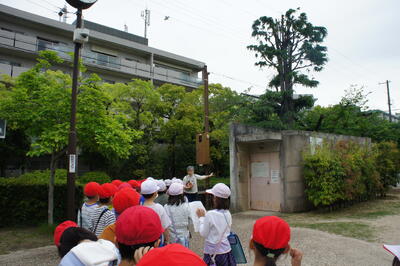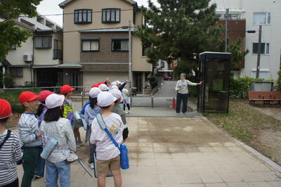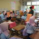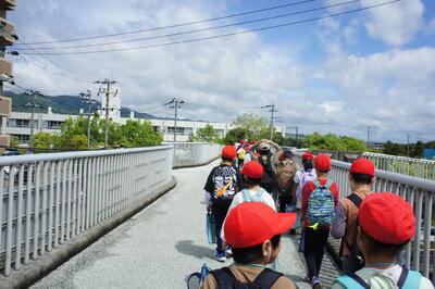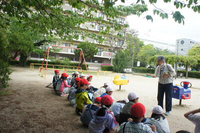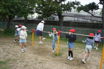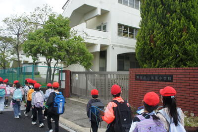 給食当番は、両手でお皿を受けとって上手に運んでいました。