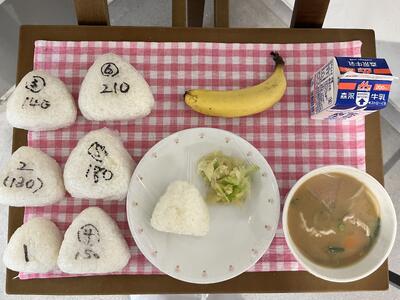明日1/17は、31年前に阪神淡路大震災があった日です。給食では、震災の時に救援物資で配られた「おむすび」と「豚汁」を作りました。学年に応じてからだに必要なご飯の量でおむすびにしました。