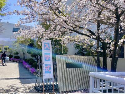 敷地内の桜が風に舞って、1年生をお出迎えしています。