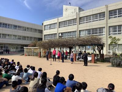 3月で打出浜小学校をさられた先生方の離任式が行われました。