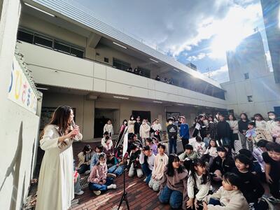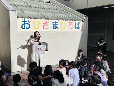 「今、おひさま広場でフルートの音色が聞こえています!」