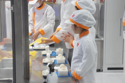 1/15は小正月でした。給食室で小豆からお汁粉、白玉粉と豆腐を合わせて練り団子を作りました。
