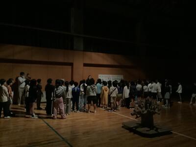 4年自然教室3 投稿: 編集長 (10/21) 火の神登場で、キャンドルファイヤが始まりました。 ゲームや歌で楽しい時間を過ごしました。 班長会議では、今日一日を振り返り、明日はどうする?と話し合いました。