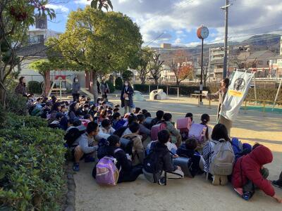 保護者や地域の方も参加してくださり、学校から約30分でたどり着くことができました。