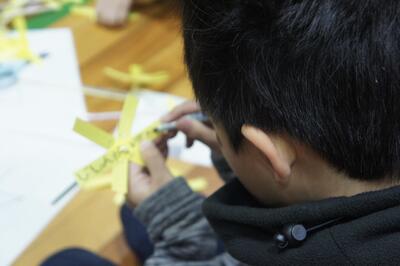 花びらにメッセージを書きます。